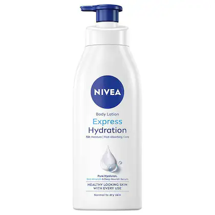 NIVEA ఎక్స్ప్రెస్ హైడ్రేషన్ బాడీ లోషన్ సీ మినరల్స్ మరియు హైడ్రా IQ తో కూడిన ఫార్ములా మీకు రోజంతా తేమను అందిస్తుందిఅదనపు వేగంగా శోషించే మాయిశ్చరైజేషన్పోషక ఫార్ములా సీ మినరల్స్ మరియు హైడ్రా IQ లను కలిగి ఉంటుంది, ఇవి మీ చర్మ పొరలను పొరలుగా మరమ్మతు చేయడంలో సహాయపడతాయి, తద్వారా మీ చర్మం అందంగా కనిపిస్తుంది.