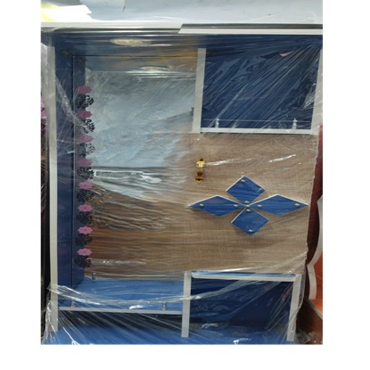 డిజైన్ వివరాలు: ఈ ఆధునిక డిజైన్లో క్యాబినెట్ డోర్ మీద ప్రత్యేకమైన నీలి రంగు పూల నమూనా ఉంటుంది