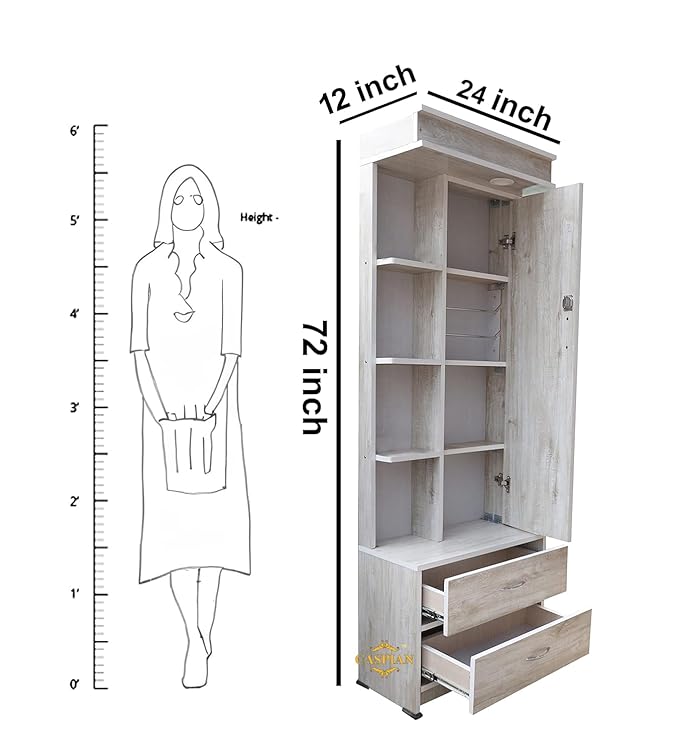 మొత్తంగా: ఇది ఒక బహుళ-ఉపయోగ యూనిట్, ఇది వార్డ్రోబ్, డ్రెస్సింగ్ మిర్రర్ మరియు ఓపెన్ డిస్ప్లే షెల్ఫ్ను కలిగి ఉంది. రెండు విభిన్న డిజైన్ భాగాలు దీనికి ఒక ప్రత్యేకమైన, ఆధునిక రూపాన్ని ఇస్తాయి.