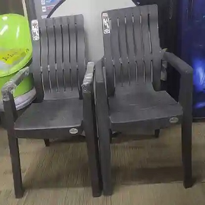 రెండు కుర్చీలు వెంటిలేషన్ మరియు సౌకర్యం కోసం నిలువు స్లాట్లతో కొద్దిగా వంగి ఉన్న బ్యాక్రెస్ట్ను కలిగి ఉంటాయి.